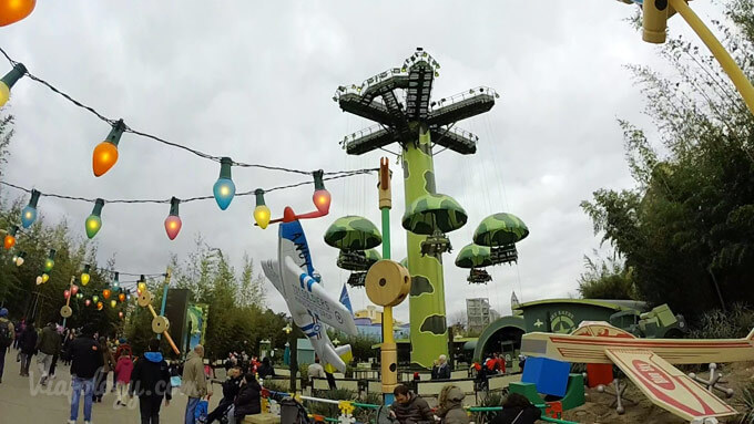 Toy Soldiers Parachute Drop: es exterior y podríamos definirla como la versión reducida e infantil de la Tower of Terror (TOT). Lógicamente es mucho más suave que la TOT, pero genera un divertido cosquilleo en la barriga. Además al ser exterior se tienen unas buenas vistas. La altura mínima requerida es de 81 cm.