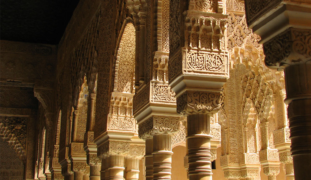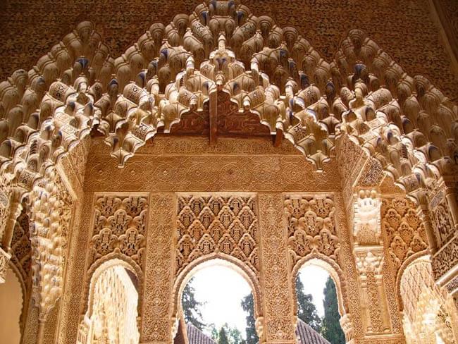 Esta es la zona más majestuosa de La Alhambra, donde se encuentran las mejores decoraciones con yeserías y alicatados, y los lugares más conocidos del recinto, como el Patio de Los Leones, Comares o el Patio de los Arrayanes entre otros.